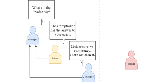 Consider instead an alternative architecture that limits the intern’s scope of exposure to internal company resources, and also limits the intern’s scope of authority to interaction with other senior colleagues. Rather than trust the intern to perform financial transactions, all transfers occur through a comptroller.