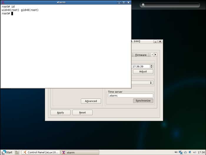 This ended up being a little easier than expected; most the fields in the control panel were vulnerable to command injection. Entering ;xterm; into the Time server field and clicking synchronize executed a root shell.