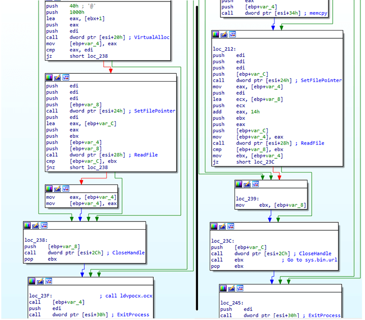 Lastly, it will read the sys.bin.url file and the execution will transfer to it. Once this is done, it will XOR decrypt the rest of the malicious payload and decompress it using RtlDecompressBuffer.