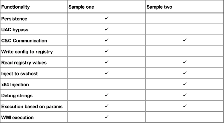 Currently, the core functionality includes writing the configuration to registry and communicating with the C C server. We did not find any malicious functionality such as uploading or downloading files, or executing attacker’s commands.
