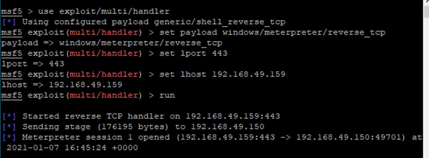 The desired shellcode is run, in this instance establishing a Meterpreter session, although obviously any shellcode could be run: