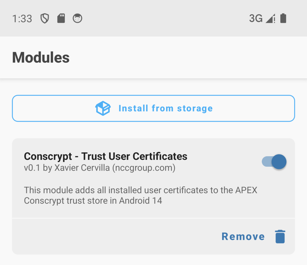 Once we had done the prior modifications, we had a functional Magisk module to intercept HTTPS traffic on Android 14.