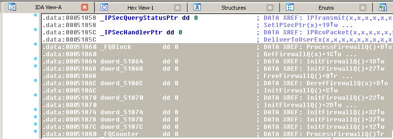 • As it is possible to register and unregister firewall hooks, TCPIP.SYS probably maintains a list of registered firewall hooks.