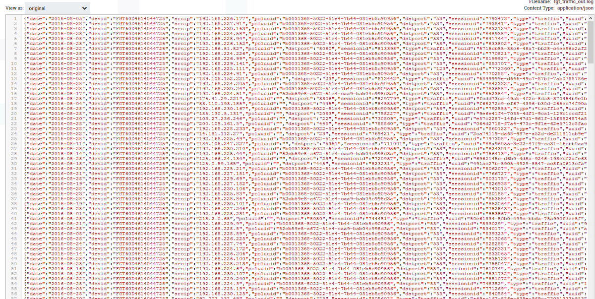 For this we elected to use some of the Boss of the SOC v1 data provided by Splunk (https://github.com/splunk/botsv1), in particular the Fortinet traffic logs. This data set is very good to do experimentation with; it’s open source and available in a JSON format as well as an indexed Splunk format which makes it much easier to use outside of Splunk.