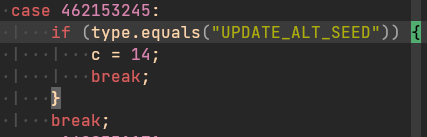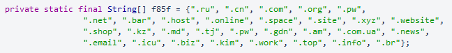 No more new versions or changes were observed until the end of December, when the TAs wanted to say goodbye to the 2021 by releasing Flubot 5.1. The first samples of Flubot 5.1 were detected on December 31. As we will see in the following section, on January 2 Flubot 5.2 samples came out. Version 5.1 came out with some important changes on DGA. This time, TAs introduced a big list of TLDs to generate new domains, while they also introduced a new command used to receive a new DGA seed from the C2 servers – UPDATE_ALT_SEED. Based on our research, this new command was never used, since all the newly infected devices had to connect to the C2 servers using the domains generated with the hard-coded seeds.