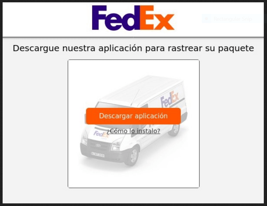 In the initial campaigns, Flubot was distributed using Fedex and Correos fake SMS messages. In those messages, the user was led to a fake website which was basically a “landing page” style website to download what was supposed to be an Android application to track the incoming shipping.