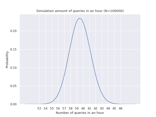 To be sure we detect this, regardless of random sleeps, we can use the fact that the sum of uniform random observations approximates a normal distribution. With this distribution we can calculate the number of queries that result in an acceptable probability. Looking at the distribution, that would be 53. We use 50 in our signature and other rules to incorporate possible packet loss and other unexpected factors. Note that this number varies between tools and is therefore not a set-in-stone threshold. Different thresholds for different tools may be used to balance False Positives and False Negatives.