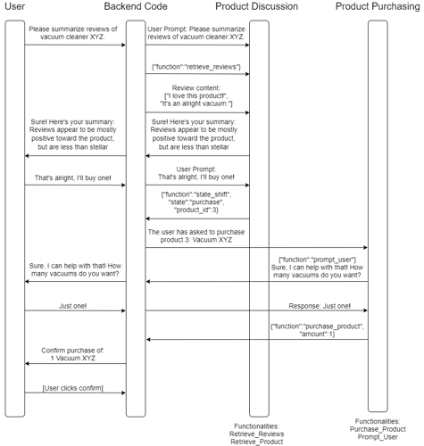 A second option is to enable the model to transition states based on the output of functional operations, but require an isolated and user-managed state for each sensitive operation, which does not receive the outputs of previous states. To leverage the previous example, a malicious review might successfully prompt inject the model to transfer to a purchasing state, but the purchasing state cannot act without additional input from the user, who likely will not confirm an unwanted purchase (such as via Human-In-The-Loop), and itself is not exposed to the output of the previous malicious state.