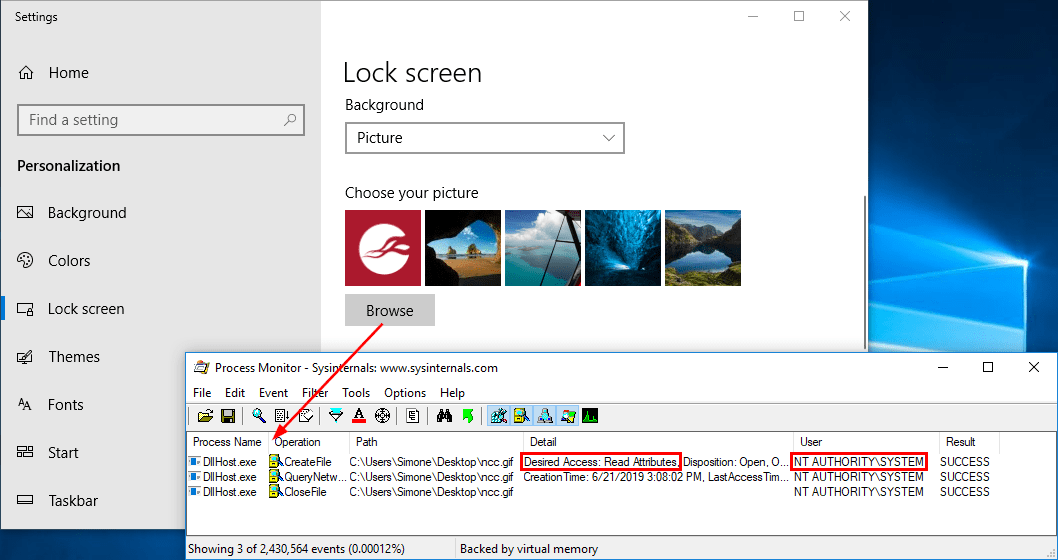 As a first approach, we investigated changing the profile image using an API or Windows command utility – but without success. However, we found that the same attack path could be exposed by the manipulation of the lock screen image.