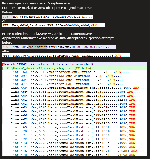 Collect enough telemetry from a Windows host or an entire estate on which processes create or change memory so its executable along with their size and you’ll be able to spot the anomalies. These anomalies may be malicious activity.